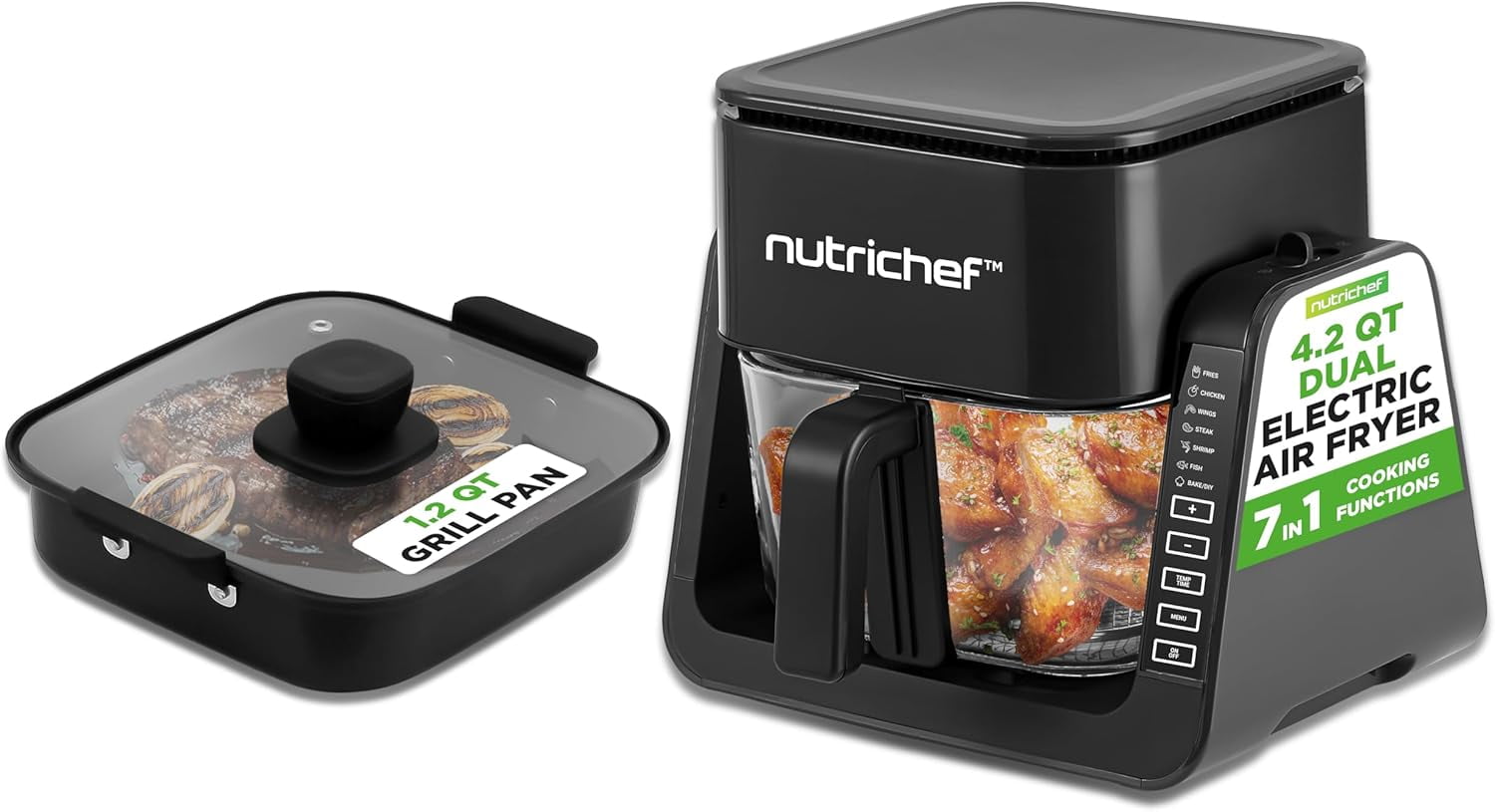 1500W Electric Air Fryer & Grill with 4L Glass Pot, 7-in-1 Functions, Large Digital Control Panel
